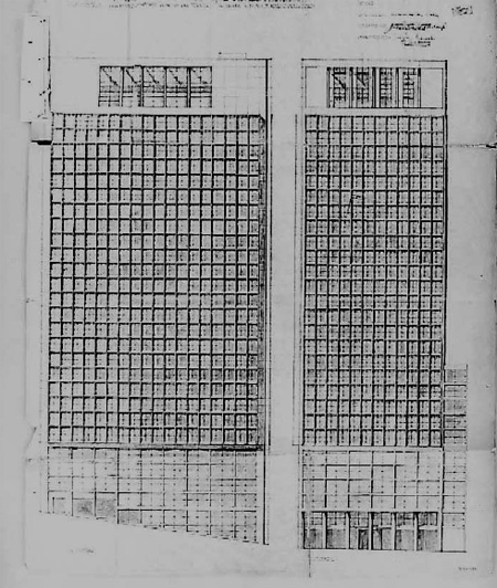 “...poderia ser aceita, principalmente si comparado com o anteriormente apresentado a folhas 13, [solução] que iria destoar, de muito, das torres da biblioteca e do predio projetado por Korngold e Beck (no prolongamento da rua Marconi), de massa, silueta e arquitetura muito mais felizes...”.